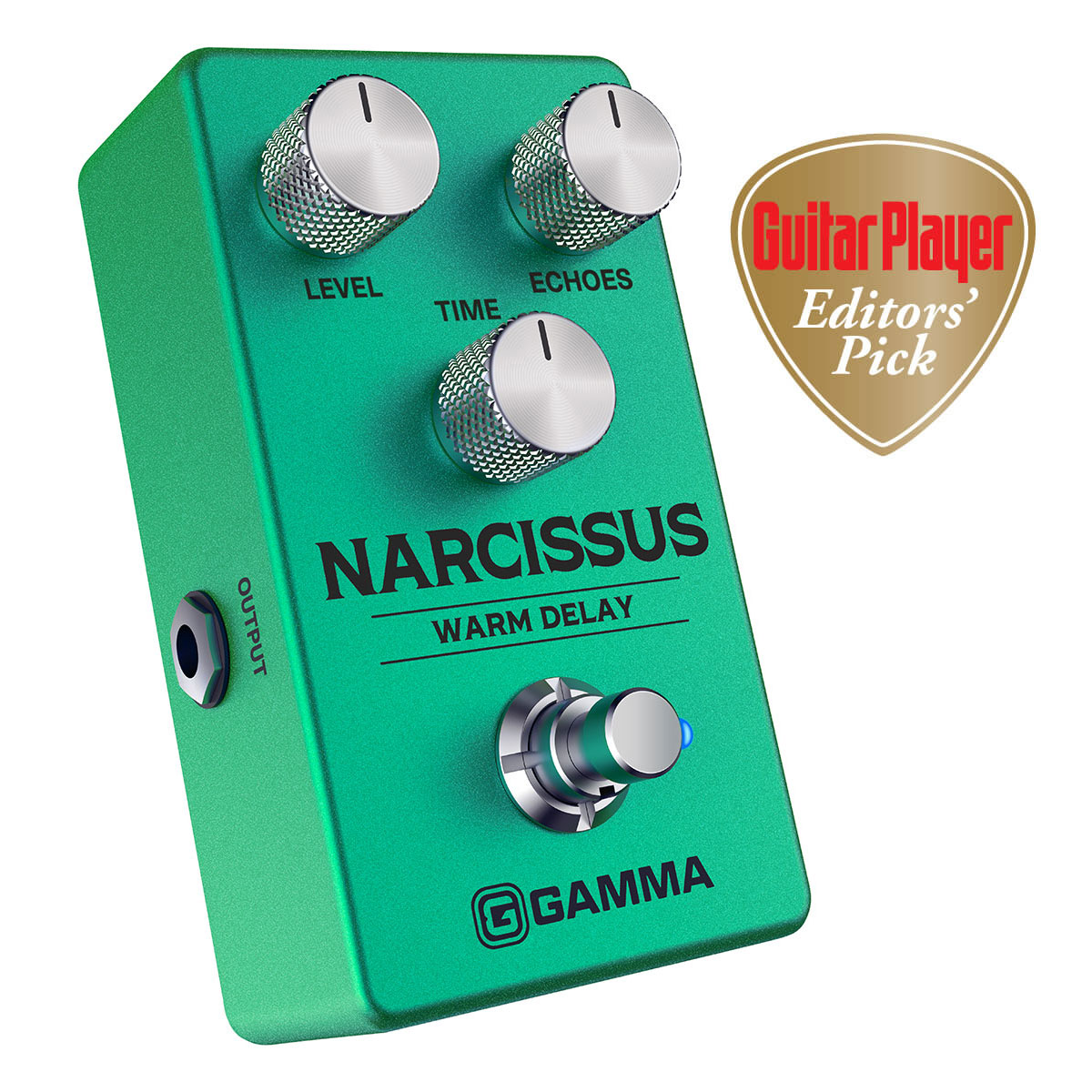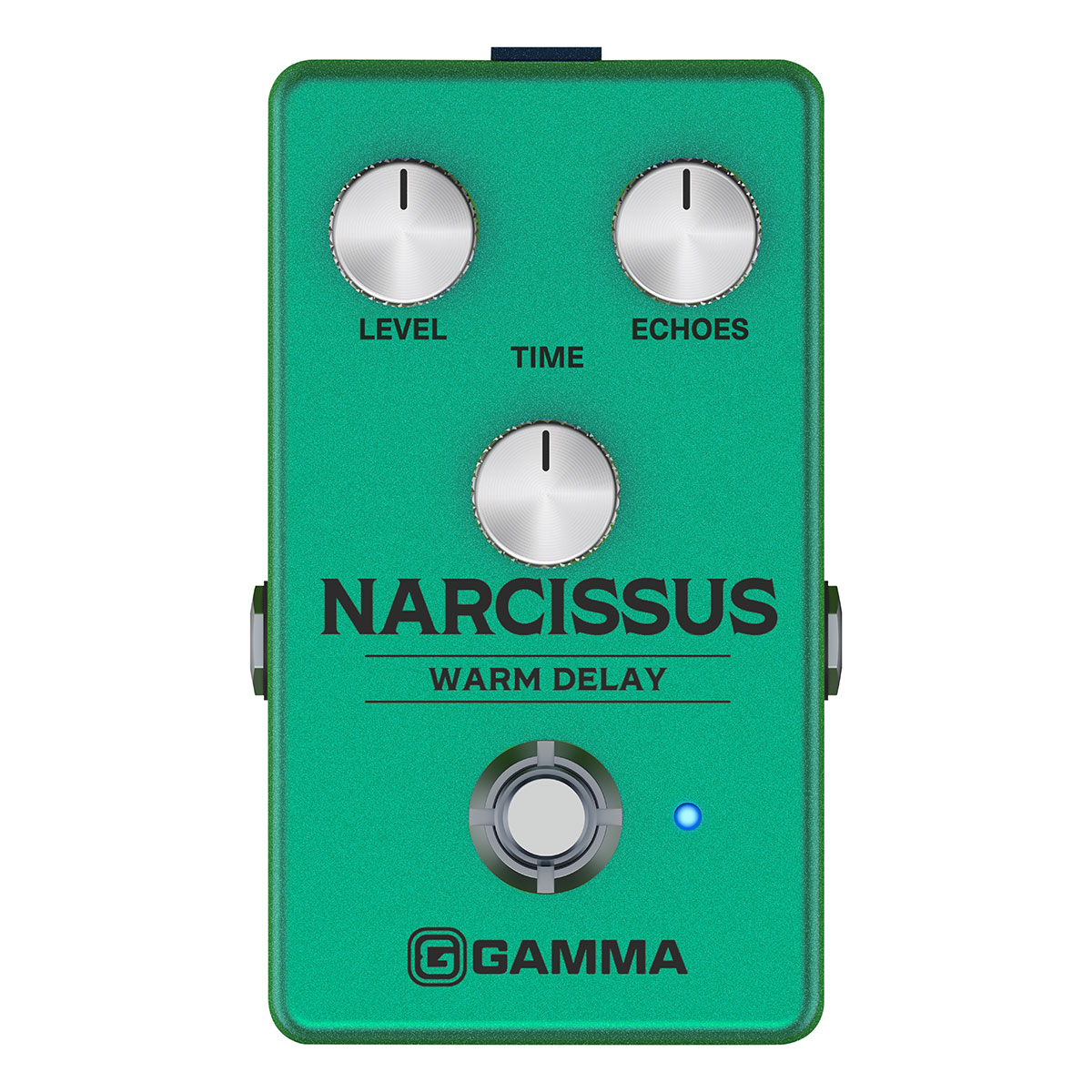 The NARCISSUS Warm Delay effects pedal delivers classic delay effects with the character of vintage “bucket brigade” delay. Delays gradually become darker with each repeat, generating a rich echo trail that doesn’t compete with new notes that you’re playing.